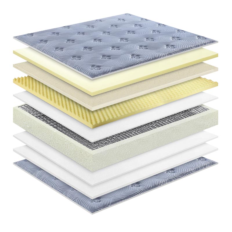 Un matelas hybride en mousse haute densité et à ressorts est une structure de matelas conçue par des professionnels qui intègre support à ressorts en acier avec couches de confort en mousse haute densité.