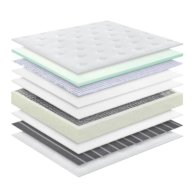 2. Formule scientifique multicouche : le matelas en tissu tricoté en soie glacée utilise des matériaux soigneusement sélectionnés et est soumis à un contrôle technique rigoureux, incarnant un savoir-faire méticuleux. Il comprend un tissu tricoté en soie glacée, une mousse rebond haute densité, une couche 3D respirante, des ressorts ensachés individuellement, un feutre de coton sain, un tissu non tissé, une mousse souple et des matériaux respirants.